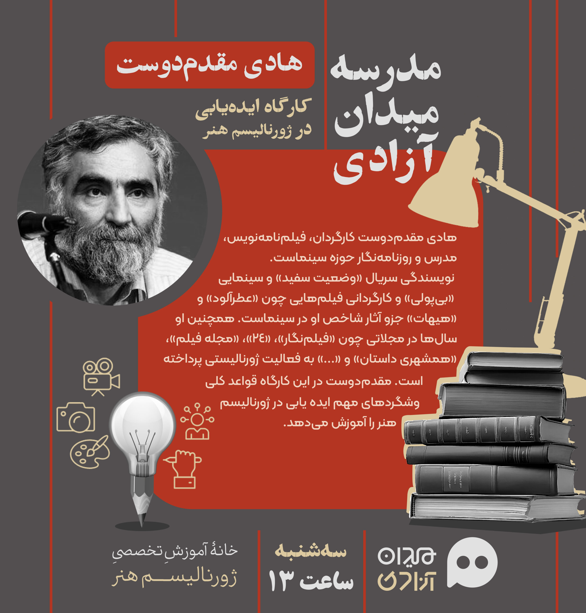 نحوه ثبت‌نام و اطلاع از جزئیات این کارگاه و کل دوره: با مراجعه به صفحه «مدرسه» در سایت مجله میدان آزادی.